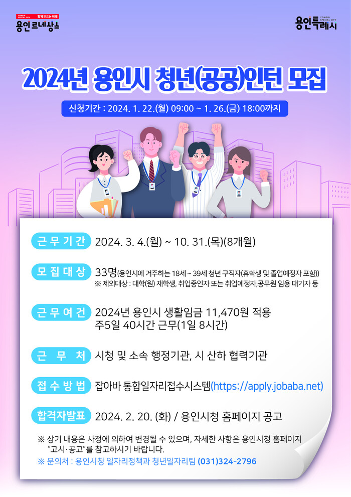 | ▲ 용인특례시 2024년도 청년인턴 모집 포스터.j |