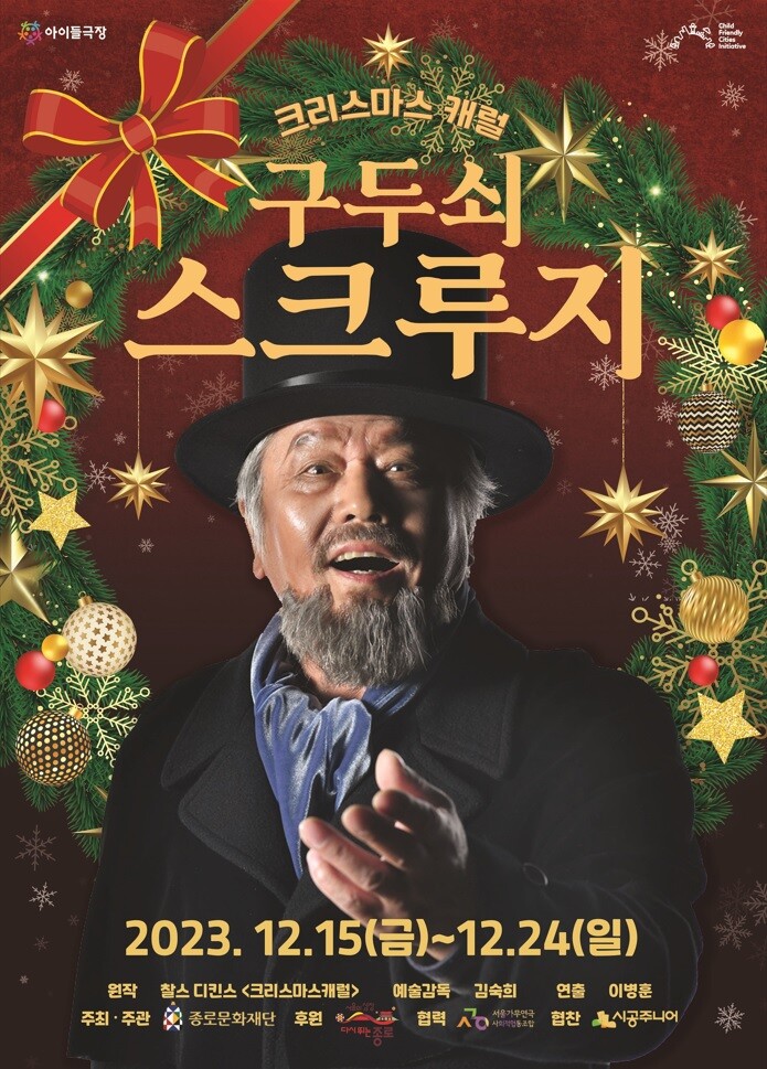 [시민일보 = 이대우 기자]서울 종로구(구청장 정문헌)가 전국 최초로 설립한 어린이 전용극장 아이들극장에서 이달 15~24일 가족음악극 「구두쇠 스크루지-크리스마스 캐럴」을 선보인다.