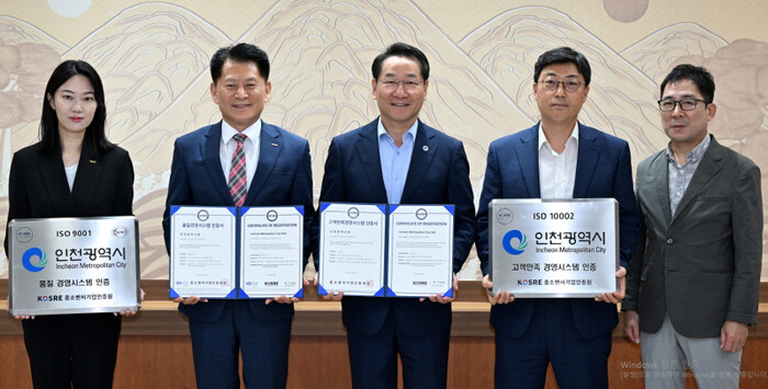 이를 위해 인천시는 6월경 중소벤처기업인증원과 ISO 9001 및 ISO 10002 인증 심사를 진행했다. 유정복 시장은 “믿음을 주는 행정, 감동을 주는 시정 구현을 위해 노력하겠다”며 “더 나은 내일을 위한 길을 시민과 함께 만들어가겠다”고 말했다.