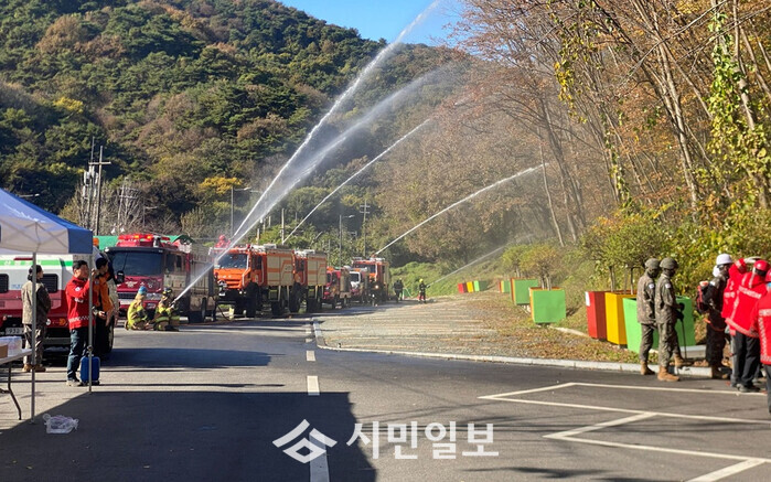 참여 기관들은 ‘산불 상황판단회의’, ‘주민 대피’, ‘문화재·민가 등 주요 시설 보호’, ‘진화자원 동원’, ‘현장 투입’ 등 산불 대응 전 과정을 실제 상황에 준해 진행했다.