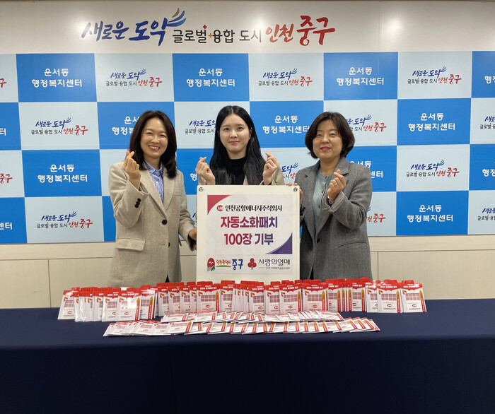 [인천=문찬식 기자] 인천 중구 운서동 행정복지센터(동장 최윤실)는 지난 27일 인천공항에너지 주식회사(대표이사 이경용)로부터 화재 취약계층을 위한 화재 예방 물품인 ‘자동소화패치’를 기부받았다고 밝혔다.
