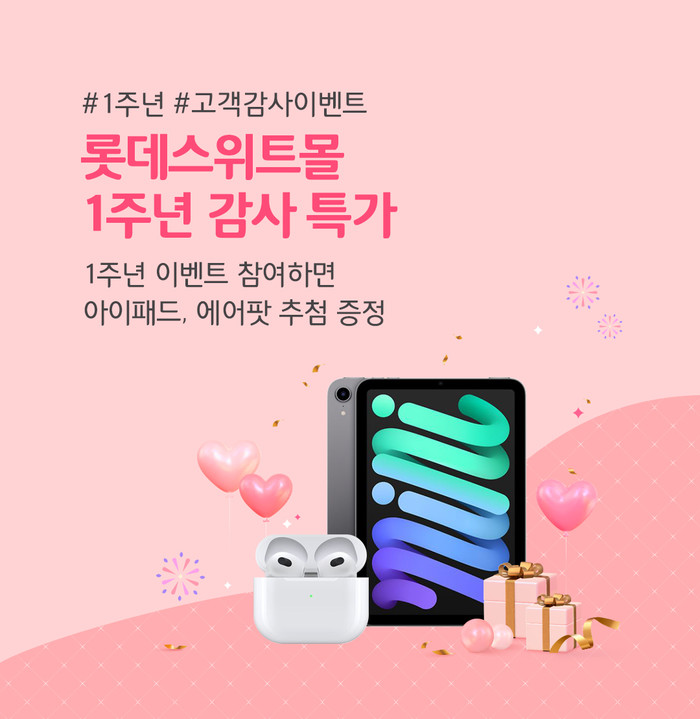 ‘1주년 기념 기획전’에서는 롯데스위트몰에서 1월 한 달간 스테디셀러, 달콤, 단짠 세트 상품 중 하나 이상 구입한 고객에 한해 추첨을 통해 아이패드 미니와 에어팟 3세대, 롯데백화점 상품권 등의 선물을 선사한다.