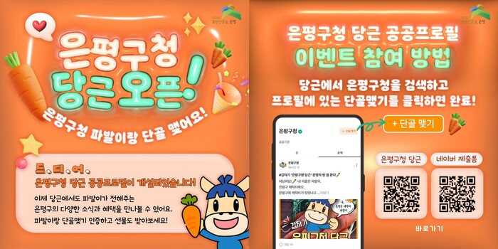 [시민일보 = 이대우 기자] 서울 은평구(구청장 김미경)은 생활밀착형 구정홍보를 강화하고 구민과의 소통을 확대하고자 지역 커뮤니티 플랫폼 ‘당근’에 공공프로필을 개설했다고 밝혔다.
