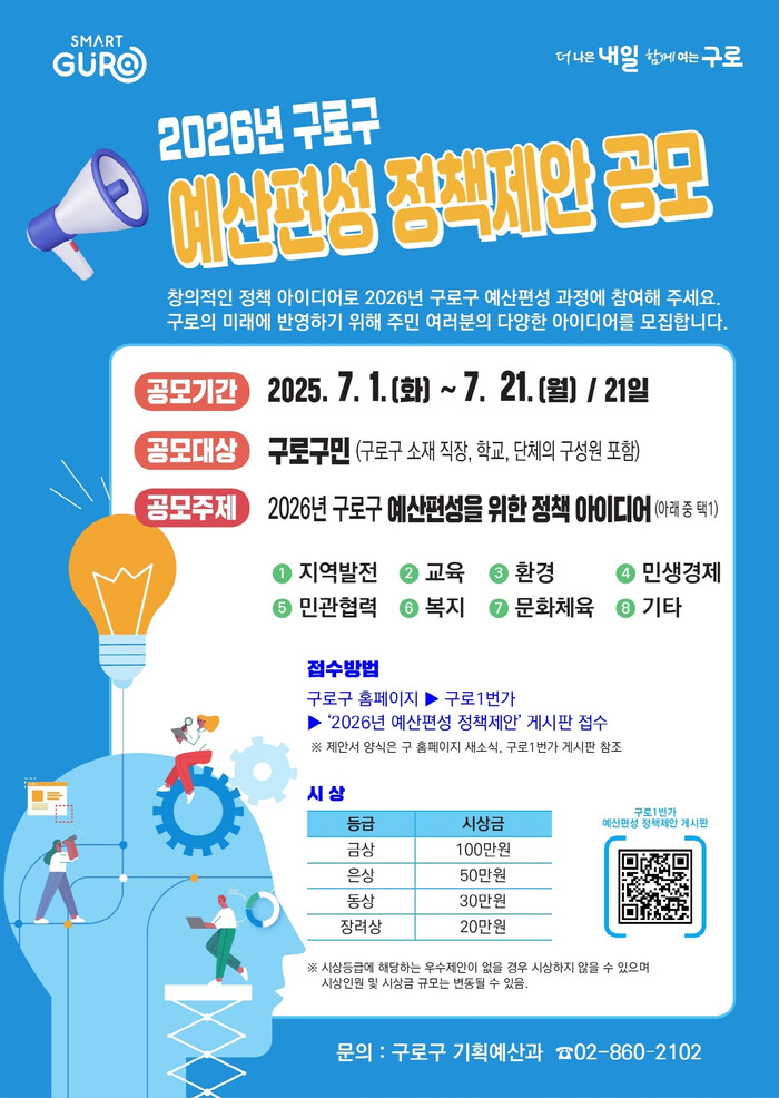 [시민일보 = 박소진 기자] 구로구(구청장 장인홍)가 오는 7월1일부터 21일까지 ‘2026년 예산편성 정책제안 공모’를 실시한다고 24일 밝혔다.