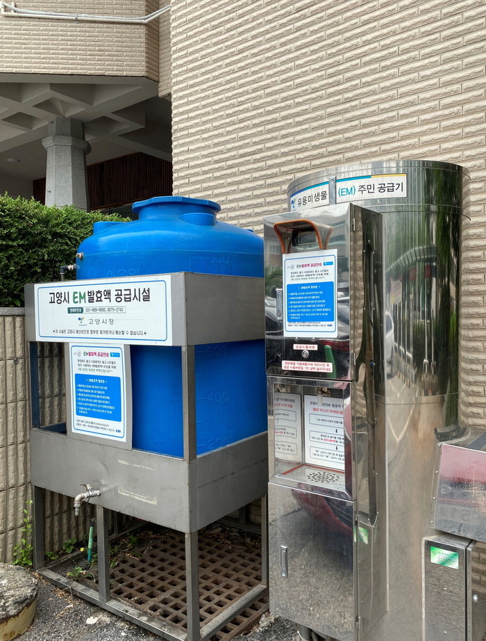 고양시청과 각 구청, 32개 동 행정복지센터에서는 수질 정화, 악취 제거에 효과적인 EM(유용 미생물) 배양액을 무료로 나눠주고 있다.