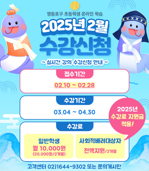 오는 28일까지 1기 수강생을 모집하며, 3월부터 본격적으로 운영할 예정이다. 신청은 ‘영등포구 초등 온라인 학습’ 누리집에서 가능하며, 자세한 사항은 구청 미래교육과로 문의하면 된다.