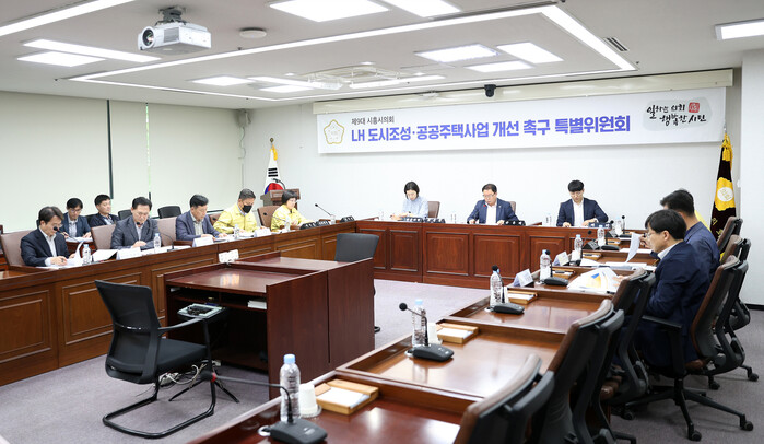 이날 LH 도시조성·공공주택사업 개선 촉구 특별위원회(이하 LH 개선 촉구 특위)는 의회운영위원회 회의장에서 관계 부서장으로부터 관내 LH 사업 민원 관련 보고를 청취한 후 민원 현장을 찾아 현안 파악에 나섰다.