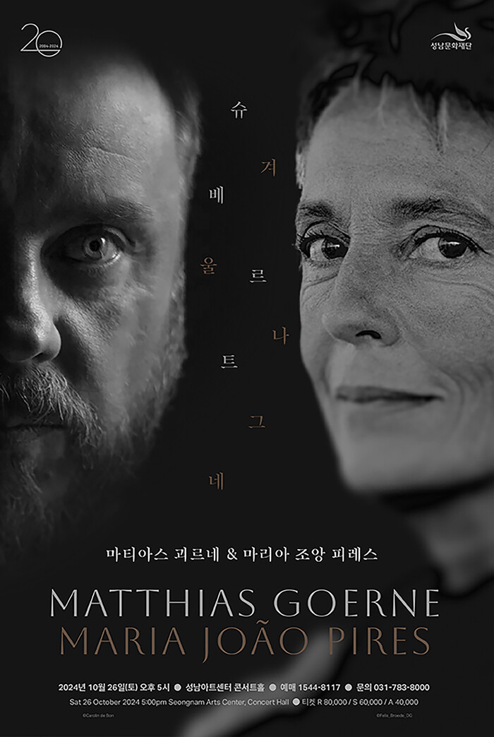 이번에 내한하는 두 거장은 성남아트센터 무대와 인연이 깊다. 괴르네는 2005년 ‘성남아트센터 개관 페스티벌’에서 슈만 가곡으로, 2015년 ‘성남아트센터 10주년 기념 공연’에서 슈만과 슈베르트 가곡으로 독일 가곡의 깊은 세계를 들려준 바 있다. 또한 피레스는 2014년 스코티시 체임버 오케스트라와 함께 특유의 섬세하고 우아한 연주로 관객들에게 깊은 감동을 선사했다.