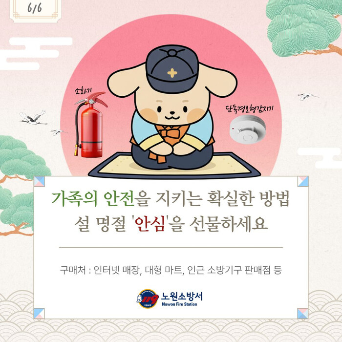 노원소방서 관계자는 “작은 경보기 하나, 소화기 한 대가 실제로 가족의 생명을 지키는 역할을 한다”며 “설 명절을 맞아 고향의 부모님과 가족에게 ‘안심’을 선물하는 마음으로 주택용 소방시설 설치에 적극 동참해 주길 바란다”고 전했다.