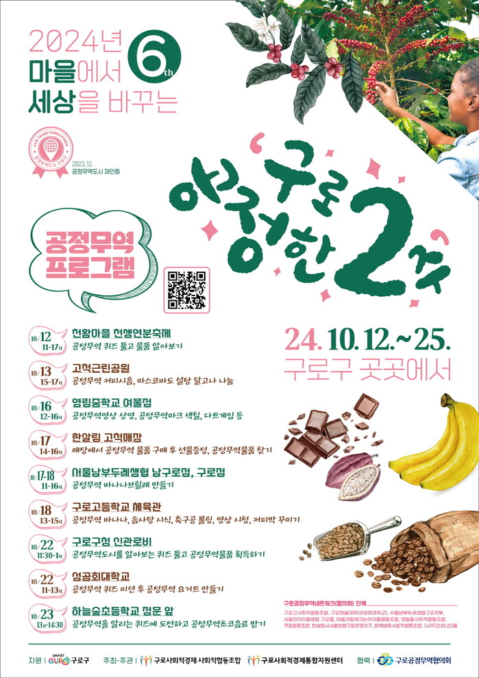 해당 행사는 구가 지원하고 구로공정무역협의회와 구로사회적경제통합지원센터가 공동 주최한다.