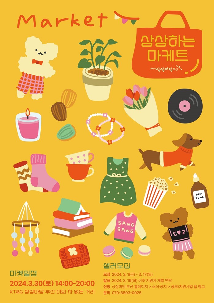 [시민일보 = 여영준 기자] KT&G 상상마당 부산이 오는 30일 지역 소상공인들과의 상생을 위한 프리마켓 ‘상상하는 마케트’를 개최한다.