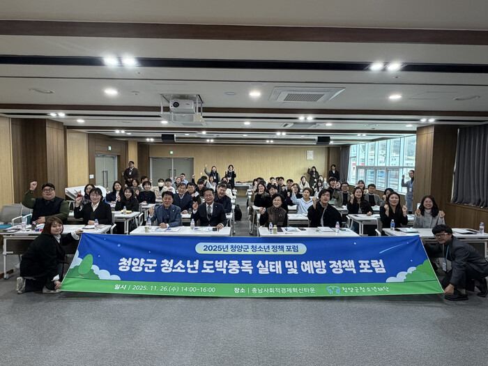 청양군청소년재단과 청양군청소년상담복지센터는 지난 26일 충남사회적경제혁신타운에서 ‘2025년 청양군 청소년 도박문제 실태 및 예방 정책 포럼’을 개최했다.