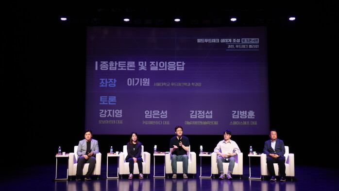 경기 과천시가 푸트테크 기업 유치를 통한 산업 생태계 조성을 위해 다각도의 노력을 기울이는 가운데, 지난 30일 과천시민회관 소극장에서 ‘과천, 푸드테크 밸리로!’라는 주제의 토크콘서트를 열었다. 사진은 참여자들이 의견을 나누고 있는 모습.(사진=과천시청 제공)