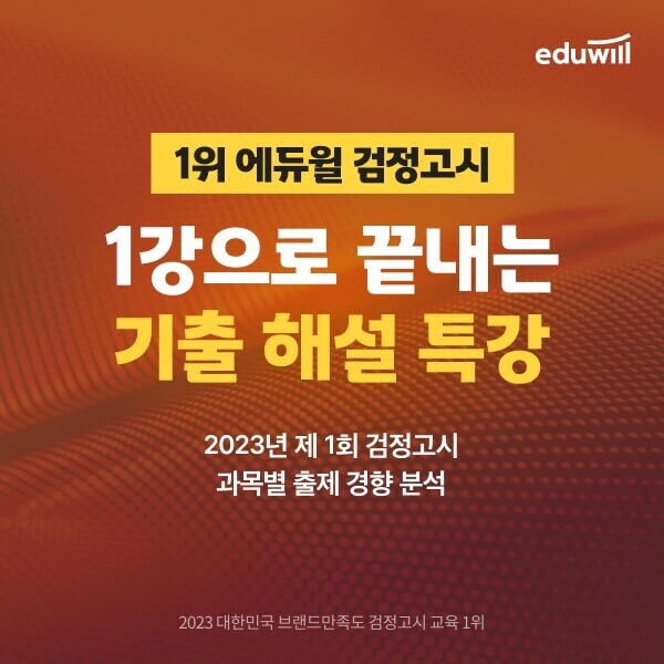 에듀윌 검정고시 관계자는 “기출 해설 특강은 에듀윌 검정고시 전문 강사진의 문제유형 전격 해부를 통해 명확한 공부 방향을 제시한다”며, “에듀윌 회원가입을 통해 이번 특강을 무료로 수강하길 바란다”고 전했다.