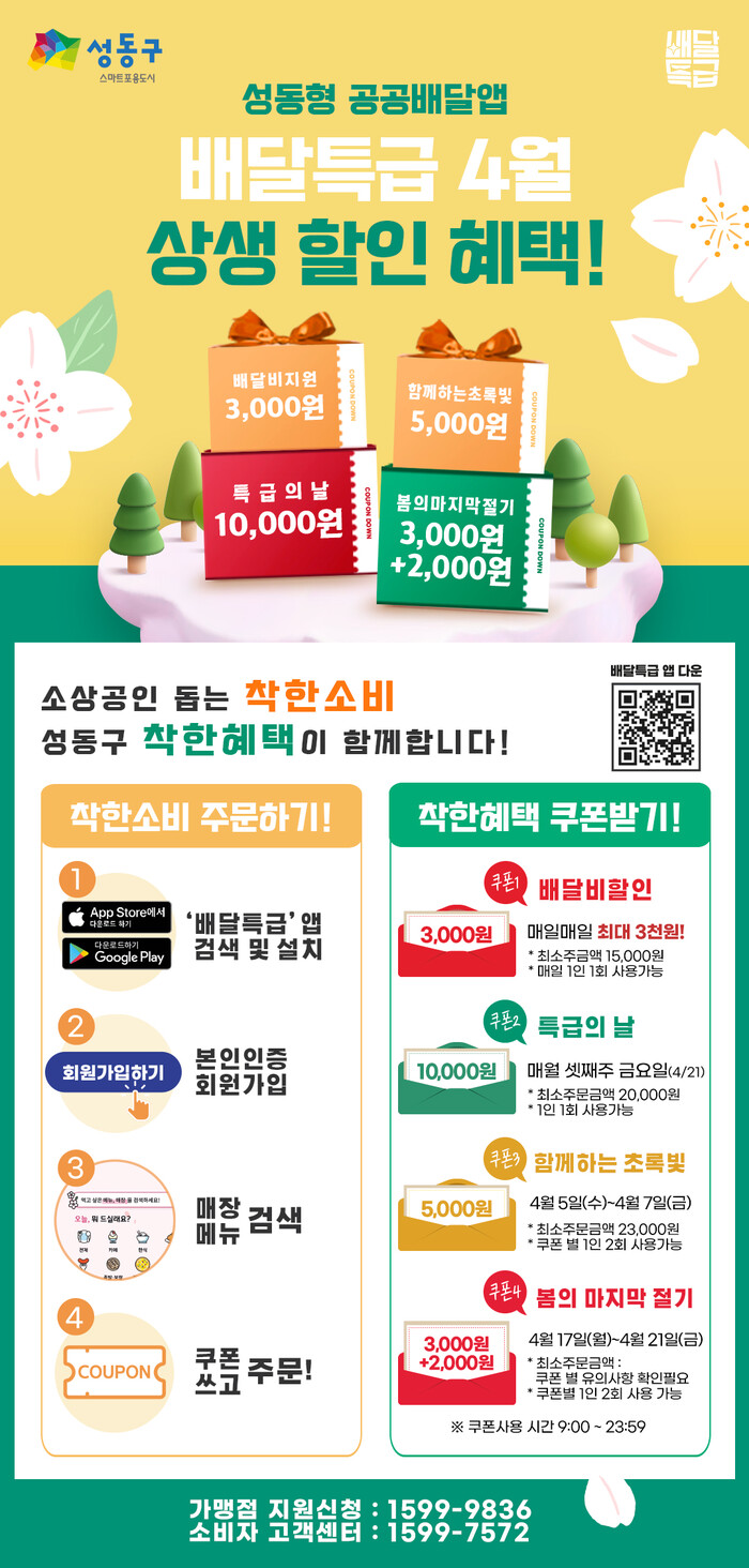 | ▲ 배달특급 할인혜택 홍보물. (사진=성동구청 제공) |