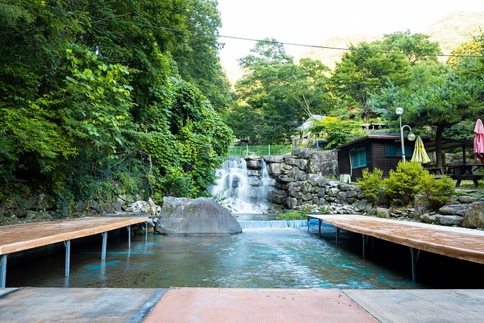 이미 이 곳은 전북 완주군의 잡나무숲과 솔향기를 느낄 수 있는 해발 450m 정상의 자연폭포 계곡중심에 위치하고 있는데다 약 4000평 규모로 조성되어 가족펜션으로 잘 알려져 있었으며, 여기에 펜션 바로 앞에 수영장도 조성되어 여름을 보내기 적절한 완주펜션으로 운영되어 왔다.