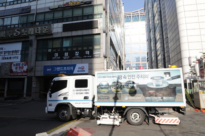 [고양=이기홍 기자] 1월 3일 고양시 마두동 지반침하 현장과 상가건물에 한국안전건설협회의 정밀진단이 실시되고 있다.