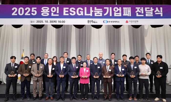 이어 협약을 체결한 3기관은 ESG(환경‧사회‧지배구조)경영을 선도하고, 지역사회를 위해 지난 한해 동안 1000만원 이상을 기부한 29개 기업을 ‘용인 ESG 나눔 기업’으로 인증하고, 행사장에 참석한 19개 기업에 ‘ESG 나눔 기업패’를 수여했다.