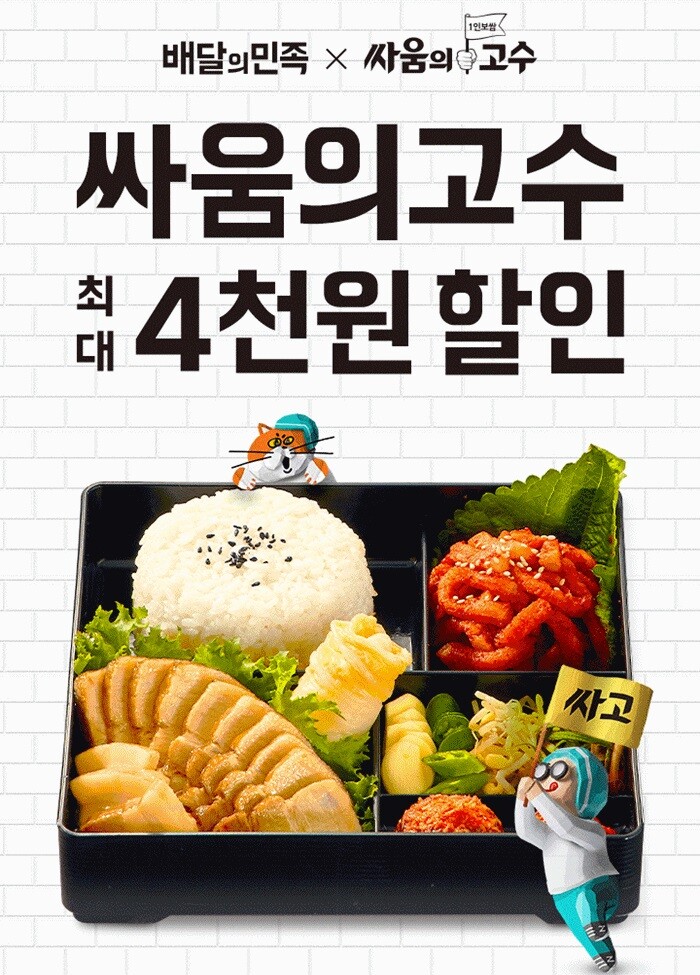 배달의민족 앱에서 싸움의고수 할인쿠폰을 다운로드 한 후 결제시 적용하면 되며 배달의민족에 입점된 싸움의고수 전국 가맹점에서 사용할 수 있다.