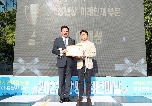 [시민일보 = 이승준 기자] 지난 17일 안양시에서 주최해 안양평촌공원에서 진행된 제 4회 안양 청년의 날 기념식에서 마인드허브 이해성 대표가 안양시 청년상 미래인재 부문을 수상했다.