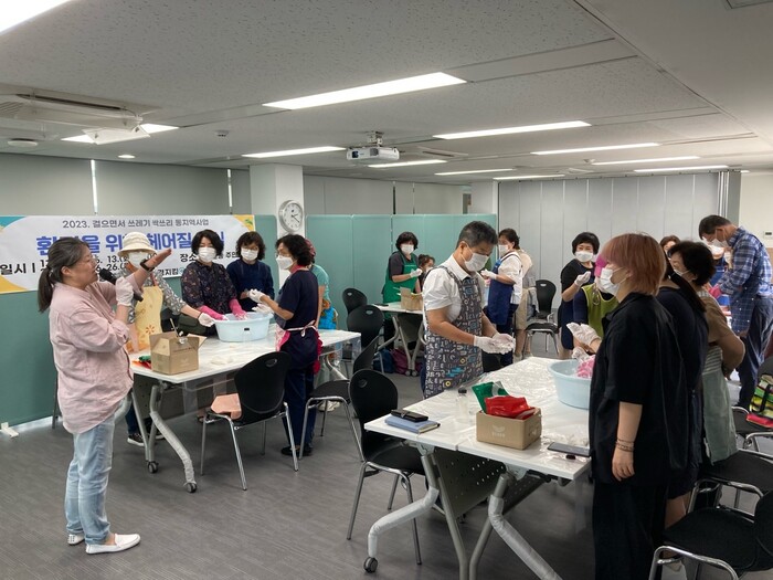 | ▲ 증산동은 동 주민자치회 주관으로 ‘환경을 위해 헤어질 결심’을 주제로 환경 교육과 함께 친환경 세제 샴푸바 만들기를 진행했다. (사진=은평구청 제공) |