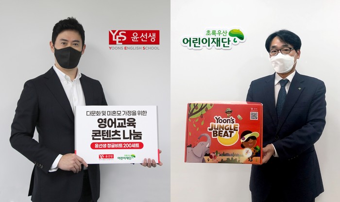 [시민일보 = 여영준 기자] 영어교육 전문기업 윤선생은 다문화 및 미혼모 가정 아동의 영어교육을 돕기 위해 초록우산어린이재단에 자사 영어학습 상품 ‘윤선생 정글비트’ 200세트를 기부했다고 29일 밝혔다.