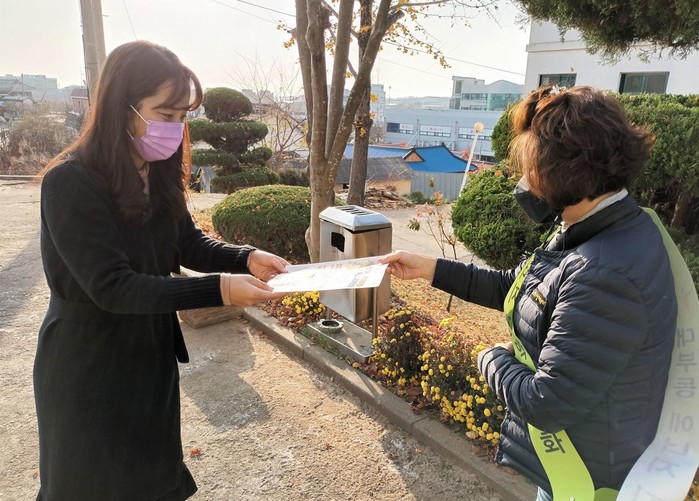 경기 안산시 단원구 대부동행정복지센터와 통장협의회는 최근 상동 일대에서 에너지 절약 캠페인을 펼쳤다. 이날 캠페인에서는 안산환경재단의 에너지 시민교육 및 생활속 탄소중립 실천을 위한 홍보물을 주민에게 배부하며 온맵시·고효율 LED조명 교체 등을 안내했다. 사진은 주민들에게 홍보물을 전달하고 있는 모습. (사진제공=안산시청)