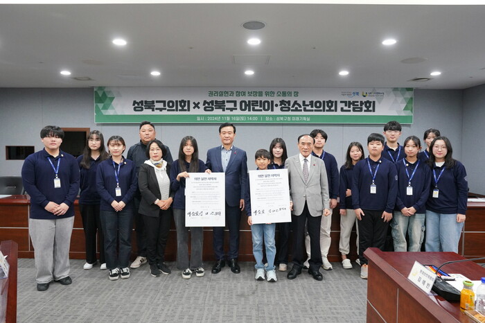 [시민일보 = 문민호 기자] 서울 성북구(구청장 이승로)가 최근 성북구 어린이·청소년의회 의원, 대학생 보좌관이 성북구의회 의원들과 함께 어린이·청소년의 의견을 담는 실행·소통의 장을 열었다고 19일 밝혔다.