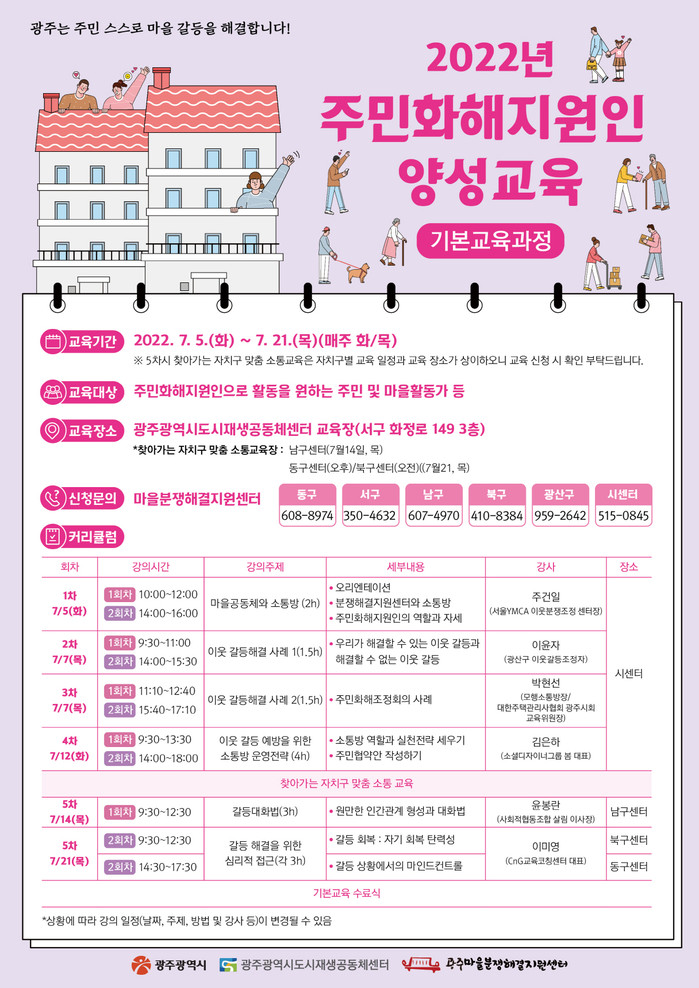 | ▲ 광주광역시 주민화해지원인 양성교육 기본교육과정.포스터 / 고아주광역시 제공 |