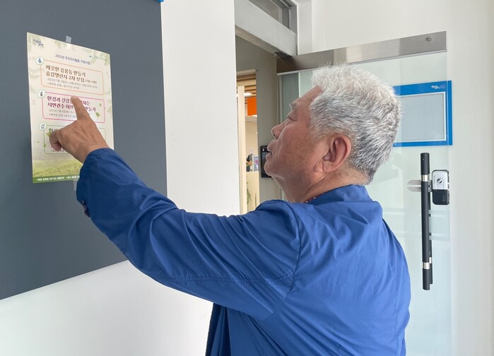 | ▲ 성동구 응봉동이 청사 및 자치회관 리모델링에 따라 하반기부터 주민자치활동 지원사업을 본격 운영한다. 사진은 프로그램 안내문을 바라보고 있는 주민 모습. (사진=성동구청 제공) |