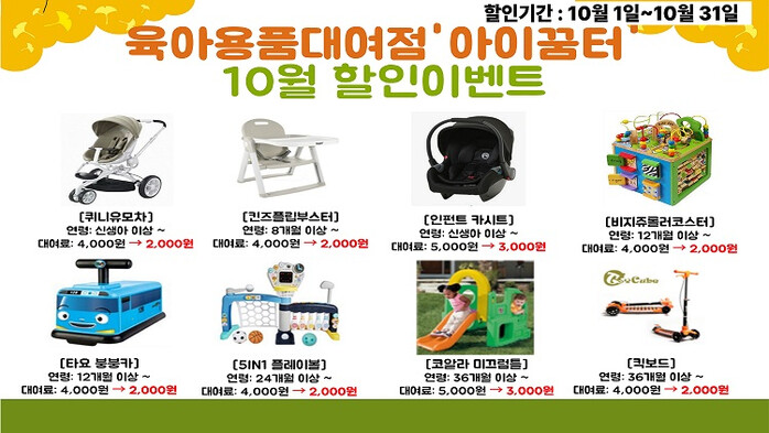 10월 육아용품 및 장난감 대여료 할인