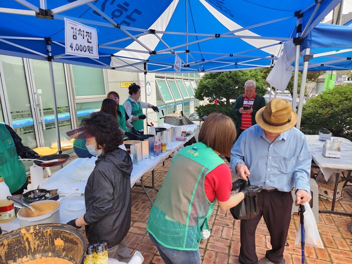 서울 성동구 금호2-3가동 새마을부녀회가 최근 동주민센터 앞마당에서 '희망 나눔 바자회' 행사를 진행했다. 사진은 새마을부녀회가 ‘희망 나눔 바자회’ 행사를 진행하는 모습. (사진=성동구청 제공)