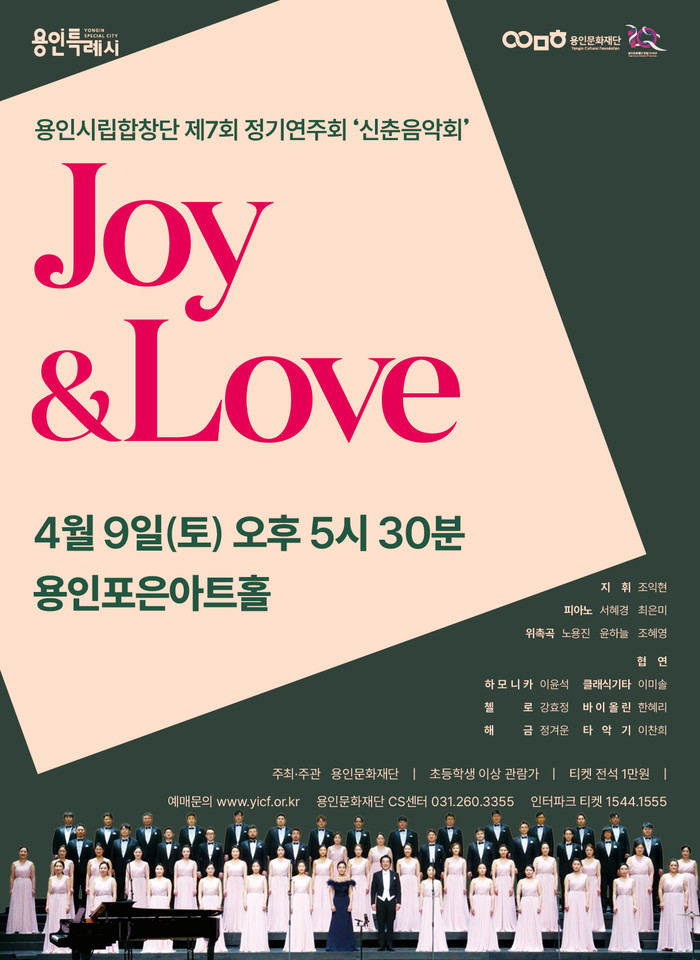 [용인=오왕석 기자] (재)용인문화재단(이사장 백군기) 용인시립합창단이 제7회 정기연주회 ‘신춘음악회 Joy and Love’를 오는 4월9일 오후 5시30분에 용인포은아트홀에서 개최한다.