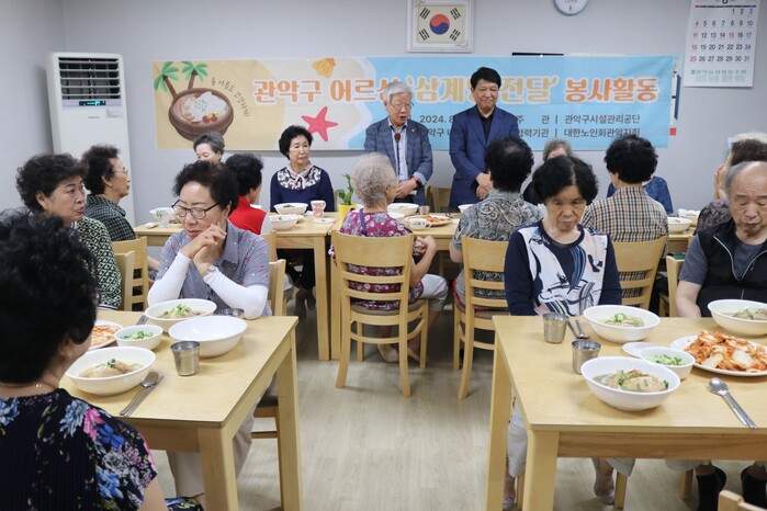 [시민일보 = 문민호 기자] 관악구시설관리공단이 최근 지역내 경로당 2곳을 방문해 '여름맞이 어르신 건강드림 삼계탕 전달'봉사활동을 실시했다.