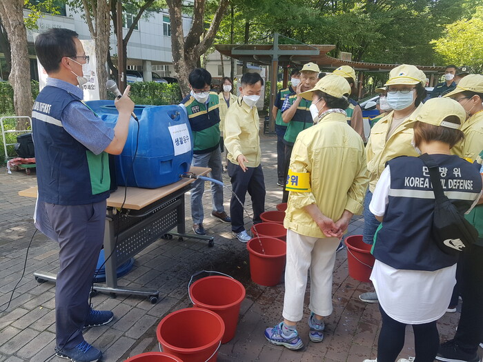 | ▲ 2022년 실시된 을지연습에서 구 관계자들이 비상급수훈련을 실시하고 있다. (사진=강북구청 제공) |