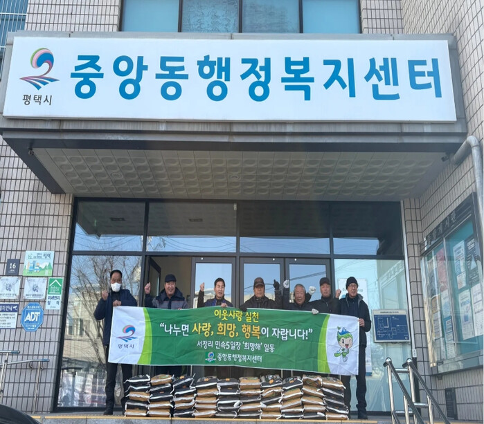 중앙동장은 “해마다 잊지 않고 나눔을 실천하시는 희망해 회원분들 덕분에 지역사회가 더 따뜻해지고 있다”며 “기부하신 소중한 쌀이 겨울철 어려움을 겪는 취약계층에 큰 힘이 되길 바라며, 중앙동에서도 서정리 전통시장 활성화와 지역사회 복지 향상을 위해 최선을 다하겠다”고 감사를 전했다.