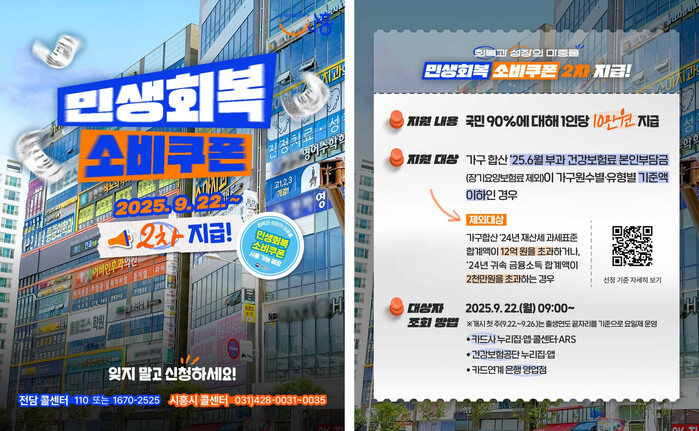 [시흥=송윤근 기자] 경기 시흥시가 오는 22일부터 ‘2차 민생회복 소비 쿠폰’ 신청을 받는다고 17일 밝혔다.