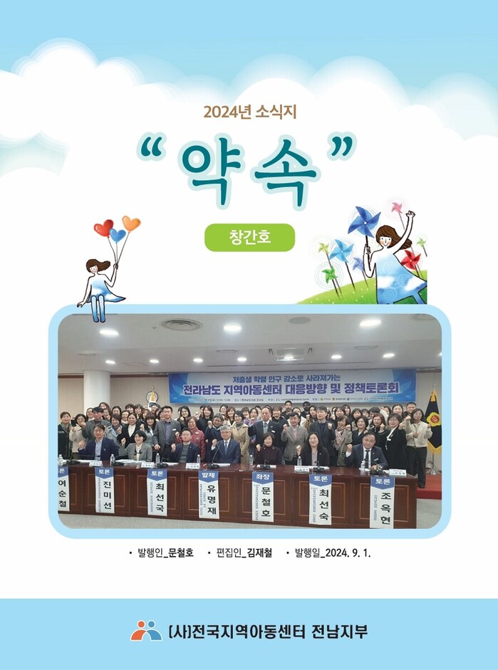 [남악=황승순 기자]창간호는 (사)전국지역아동센터협의회 소개와 주요 사업·전남지부 활동 연혁·2024년 사업실적 보고서 등 24페이지 분량의 내용이 담겨 있다.