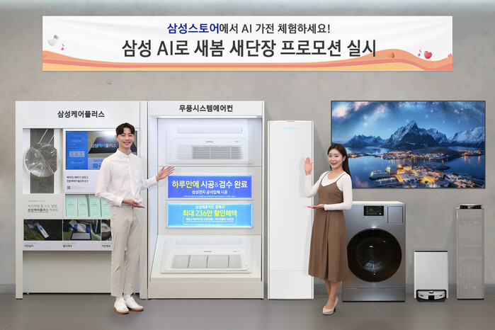 [시민일보 = 여영준 기자] 삼성스토어가 새로운 시작을 준비하는 혼수·이사 시즌을 맞이해 AI 신제품을 비롯한 다양한 가전제품을 특별한 혜택으로 만나볼 수 있는 '삼성 AI로 새봄 새단장' 프로모션을 진행한다.