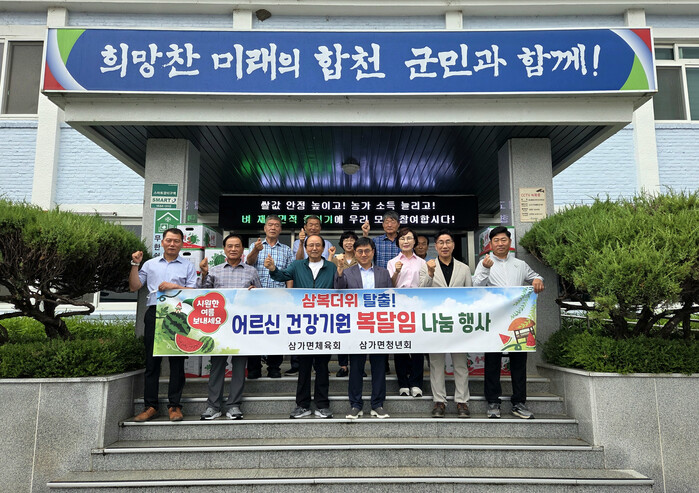 서문병관 삼가면장은 “체육회와 청년회가 함께, 어르신들을 위해 복달임 수박 나눔 행사를 개최해 삼가면민들의 화합과 온정을 느낄 수 있어 감사하다”고 밝혔다.