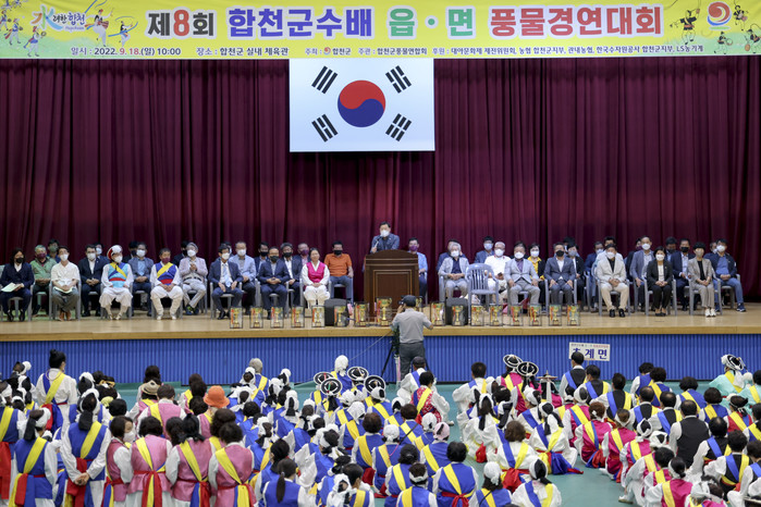 김윤철 합천군수는 축하인사를 통해 “17개 읍면 풍물인들이 긍지와 자부심을 가지고 준비한 합천군 풍물경연대회가 코로나19로 지친 군민들에게 생활의 활력소가 되기를 바라며 앞으로도 지역 전통문화 발전과 계승에 중추적인 역할을 하길 바란다”고 말했다.