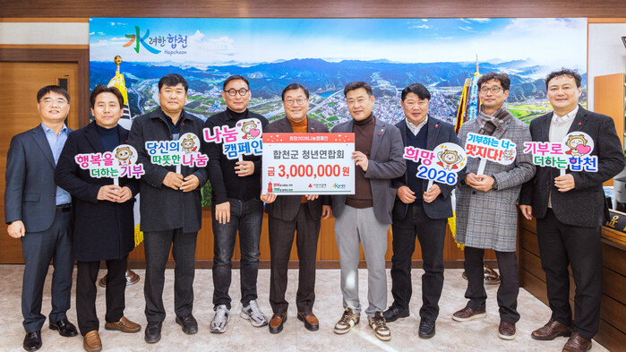 합천군 관계자는 “지역 청년들이 이웃사랑 실천에 앞장서 주셔서 감사드린다”며 “기탁된 성금은 꼭 필요한 곳에 소중히 전달하겠다”고 말했다.