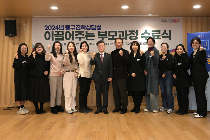 [시민일보 = 여영준 기자] 중구(구청장 김길성)가 지난 10일 ‘이끌어주는 부모과정’의 진로상담사 2·3급, 학습상담사 3급 전문자격 과정 전체를 최종 수료한 15명에게 수료증을 수여하고 격려했다.