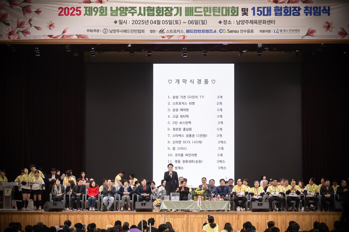 5일, 남양주체육문화센터 실내체육관에서 열린 제9회 남양주시협회장기 배드민턴 대회 개회식 및 15대 협회장 취임식에는 조성대 의장을 비롯해 이정애 부의장, 주광덕 남양주시장, 박병삼 남양주시배드민턴협회장 등 주요 인사와 대회 참가 선수 및 관계자 등 2,000여 명이 참석했다.