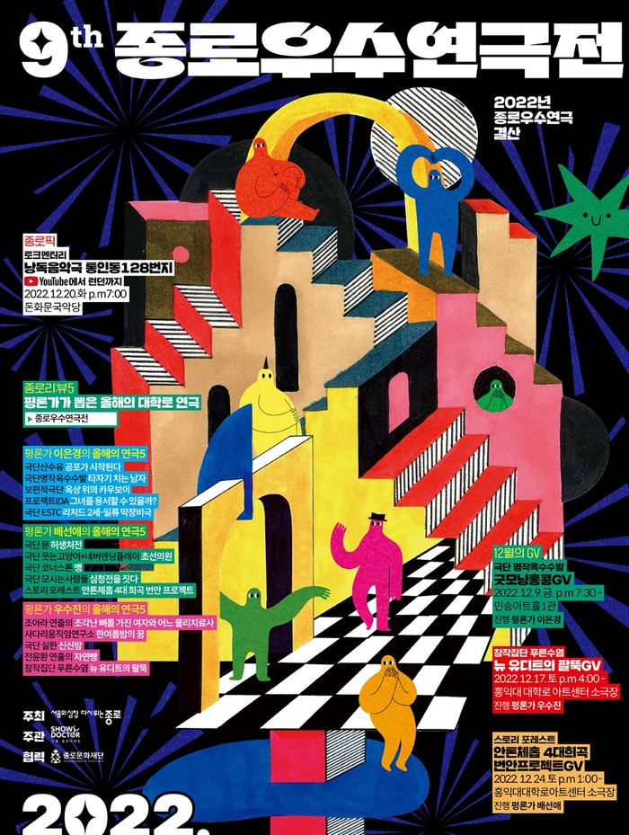 ‘12월의 GV’는 극단 명작옥수수밭의 ‘굿모닝홍콩’, 창작집단 푸른수염의 ‘뉴 유디트의 팔뚝’, 스토리 포레스트의 ‘안톤체홉 4대 희곡 번안 프로젝트’를 선보인다. 세 명의 평론가가 진행을 맡았으며 관람비용은 무료다. 신청은 종로문화재단 문화기획팀을 통해 하면 된다.