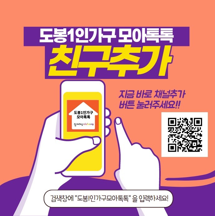 [시민일보 = 박준우 기자] 서울 도봉구(구청장 오언석)가 지역내 1인가구 지원를 지원하고자 '도봉1인가구 모아톡톡' 카카오 채널을 운영한다고 2일 밝혔다.