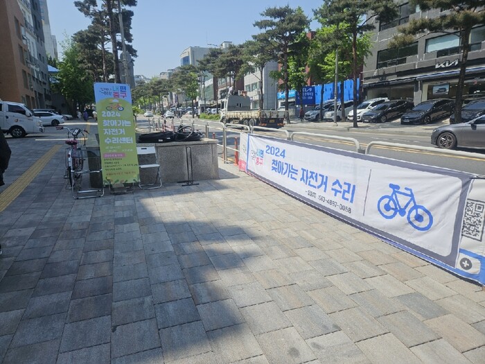 구에 따르면 자전거 무상수리 서비스는 매주 화·수·목·금요일마다 운영된다. 15개 동별로 지하철역 출구 앞, 공원, 주민센터 등 지정된 장소를 순회하며 찾아간다.