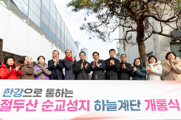 행사는 절두산 순교성지 원종현 신부의 축하 기도로 시작돼 성지의 의미를 되새기는 엄숙한 분위기 속에서 진행됐으며, 이후 참석자들은 새롭게 정비된 하늘계단을 직접 둘러보는 시간을 보냈다.