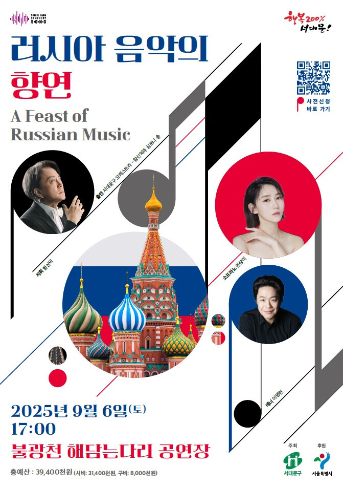 [시민일보 = 이대우 기자] 서대문구(구청장 이성헌)가 오는 6일 토요일 오후 5시 불광천 해담는다리 공연장에서 ‘러시아 음악의 향연·A Feast of Russian Music’공연이 열린다.