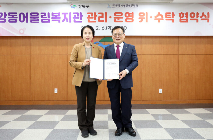 [시민일보 = 이대우 기자] 서울 강동구(이수희 구청장)는 최근 사단법인 한국지체장애인협회와 강동어울림복지관 위‧수탁 협약을 체결했다고 밝혔다.